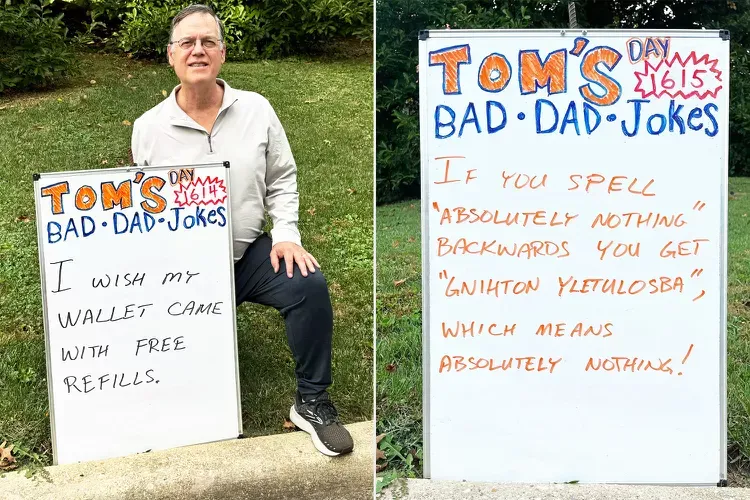 "What would happen if you threw all the books in the ocean? It would cause a title wave." ~ Just one of the over 1,600 dad jokes Tom Schruben has posted in his yard over the past four years. And recently, People Magazine took notice.