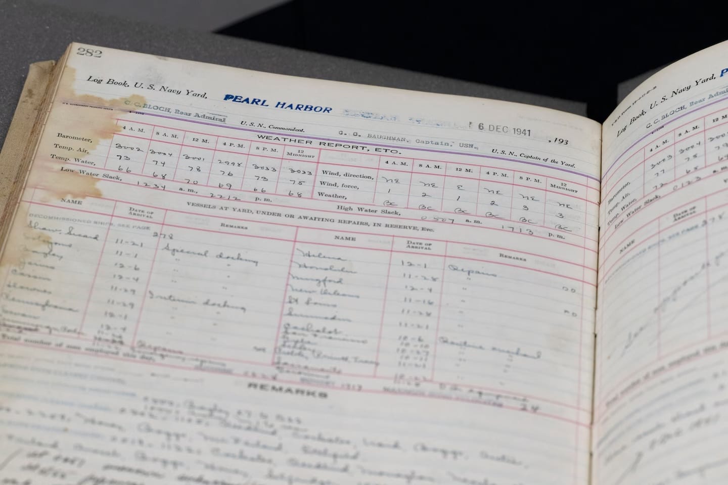 Investigative archivist Mitchell Yockelson on the recent recovery of a misplaced Pearl Harbor logbook. Airbases kept logbooks to track events and observations, and the recovered volume covers 16 months before and after the attack on Pearl Harbor. The book was taken from the trash in the 1970s by Michael William Bonds’ mother, and stored away for decades until Bonds and his fiancé rediscovered it during a move.
