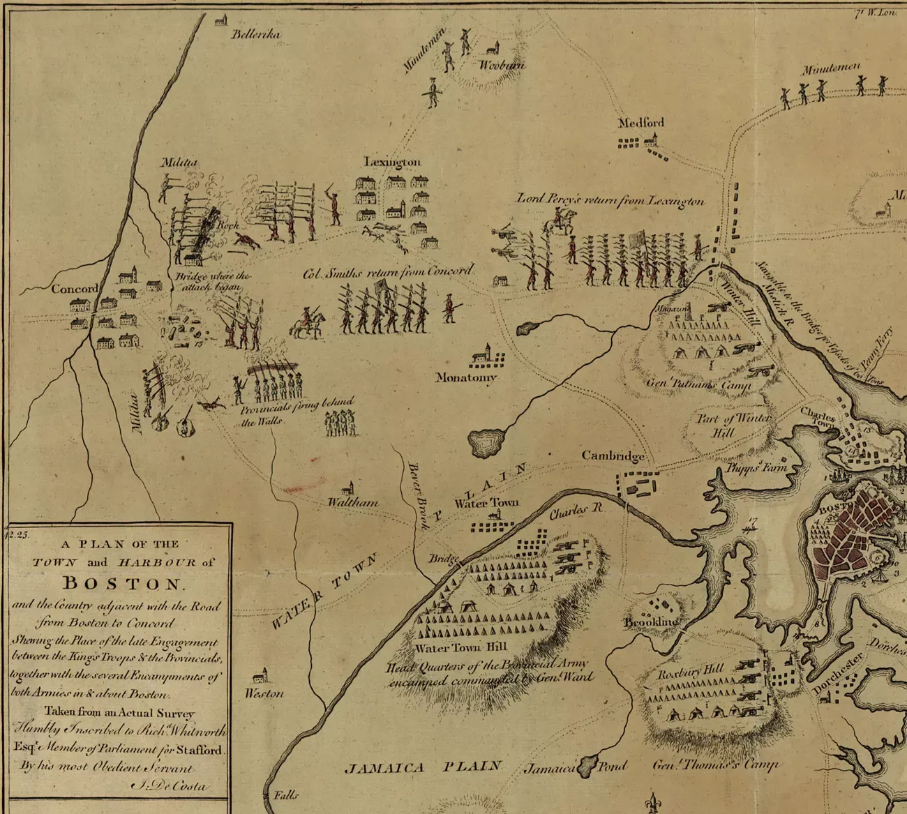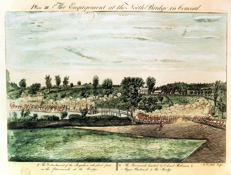 About 700 British soldiers marched from Boston to seize colonial weapons, and the Minutemen met them at Lexington Green in Massachusetts, where the first shots rang out — though historians still debate who fired them. Fighting intensified at Concord’s North Bridge, where colonial forces pushed the British into retreat using guerrilla-style tactics.