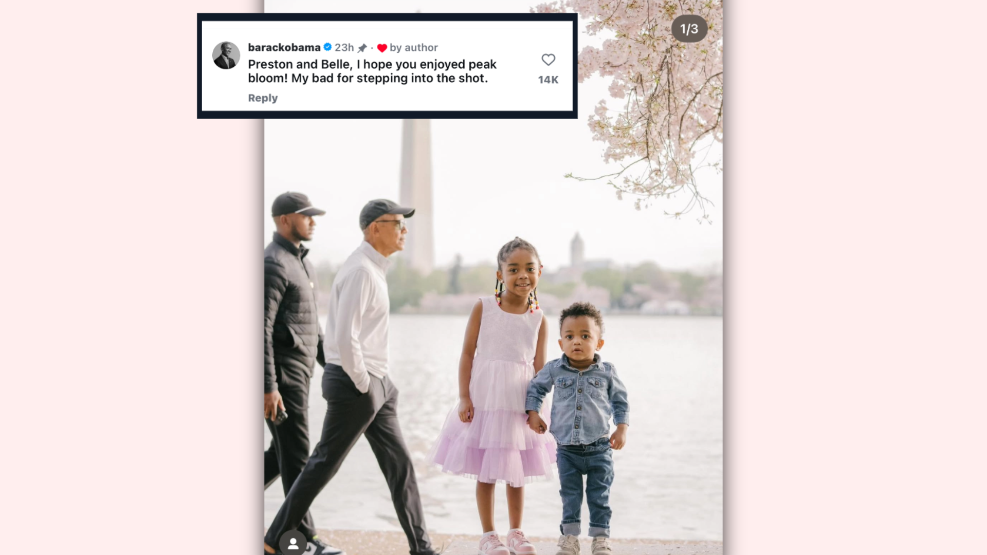 A legendary photObama! π A mother finds the 44th president of the United States casually strolling through the background of her family photos. President Obama posted his own photos of America's famous blossoms.