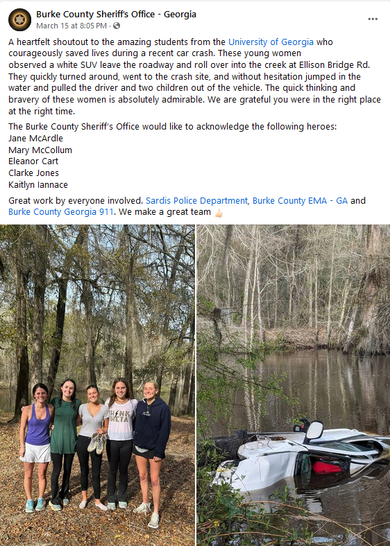 Life-Savers: Sorority sisters hailed as heroes, jumping into action (and the water) to save a family, earning themselves honorary deputy status with their local Sheriff's office.