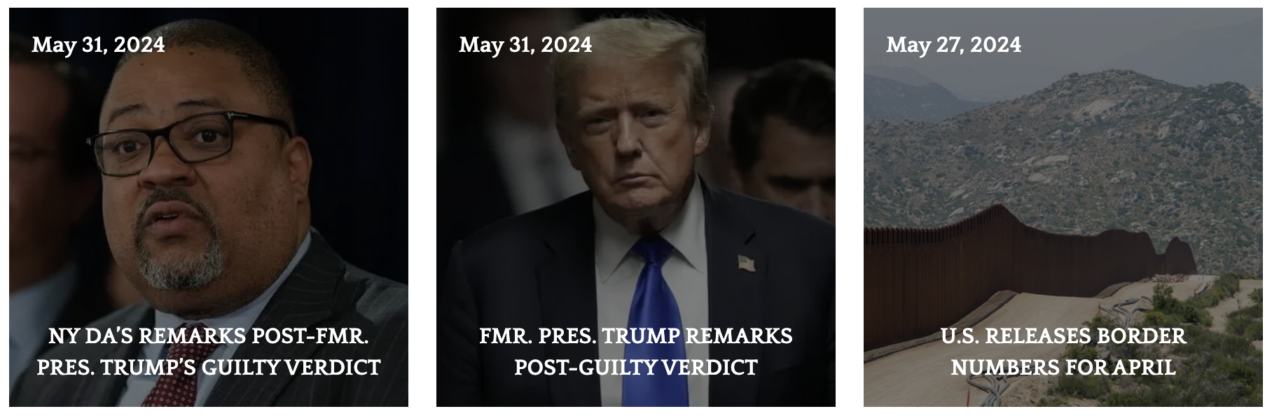 ✓ Quote from New York District Attorney Alvin Bragg's post-verdict remarks: "Today, we have the most important voice of all and that’s the voice of the jurors, they have spoken."